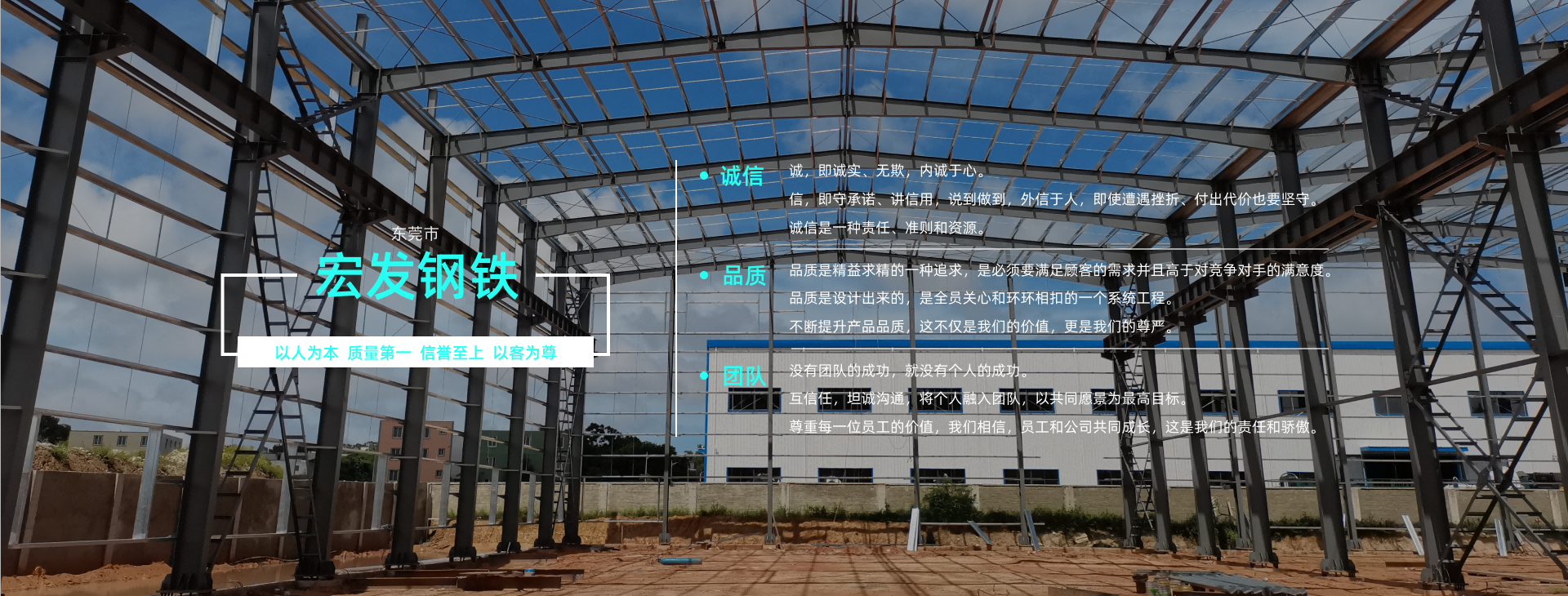宏發鋼鐵企業是目前華南地區鋼鐵企業中最具規模的龍頭 企業之一,集團總部位于東莞市東部工業園。主營業務:建筑類 鋼結構產品的生產、加工、銷售,包括型材、彩瓦、夾芯板等圍 護系統;工業用金屬板材的專業分條及剪切,包括冷板、電解板、 鍍鋅板等。  公司從1993年成立至今,經過二十多年的蓬勃發展,集團旗 下已擁有:東莞市宏發鋼鐵結構材料有限公司、廣東宏泰重工鋼 結構有限公司(擁有國內外先進鋼結構生產設備、專業加工大型 箱型、橋梁、門式鋼結構以及圍護系統,年生產能力二十萬余 噸。);東莞市宏順金屬材料有限公司(專業分條及裁切各種電 子五金加工用金屬板材,研發生產高端組合建筑系列產品。); 東莞市宏駿鋼鐵貿易有限公司(型鋼、型材等銷售,各種工業、 建筑業鋼材的進出口貿易業務。);廣東宏鋼建設工程有限公司 (工程承包);佛山莞順工廠(圍護系統);(香港)宏發鋼鐵 有限公司;(新加坡)宏發鋼鐵有限公司。